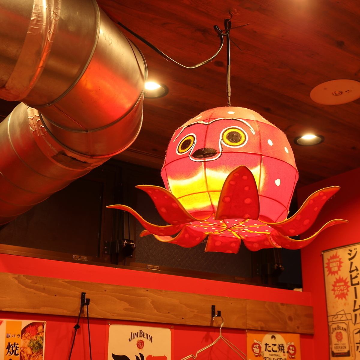 輕鬆活潑的氛圍很吸引人。章魚燈籠發出的柔和光線籠罩著整個空間,營造出溫暖舒適的氛圍。備有適合小團體用餐的吧台座位,以及可與朋友一起放鬆的桌椅座位。您可以在熱鬧的空間內享用飲料和食物,聆聽從熱盤中飄出的芬芳香氣以及烹飪食物時發出的悅耳聲音。